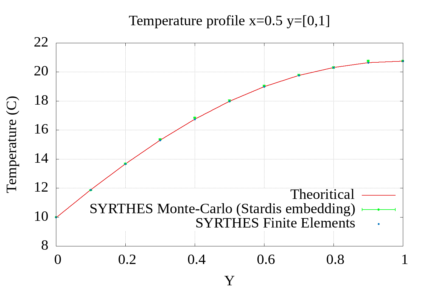 Finally, we present a validation test case of SYRTHES, the thermal code developed by Électricité de France, which provides both a finite element solver and a Monte Carlo solver powered by Stardis.